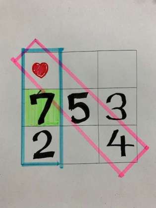 あとは、縦横斜めどの列を足し算しても15になるように数字を入れていきましょう。