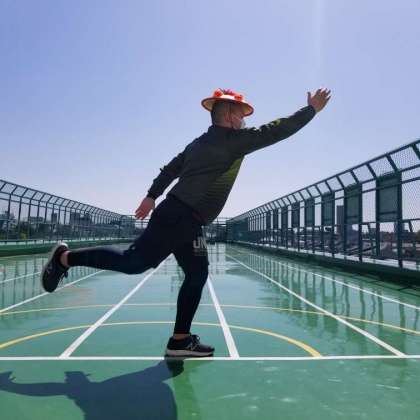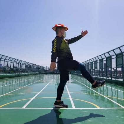 片足で立って、浮かせた方の足を大きく前後に振ります。