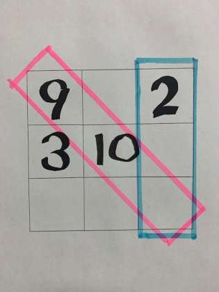 ピンクの列の数字の足し算の答えは水色の列の数字の足し算の答えと同じですから