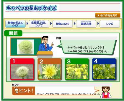 さて、「キャベツ、なす、ねぎ」のお花はどれか分かりますか?