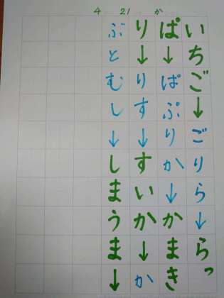 ノートと鉛筆を用意して、おうちの人としりとりをしてみましょう。