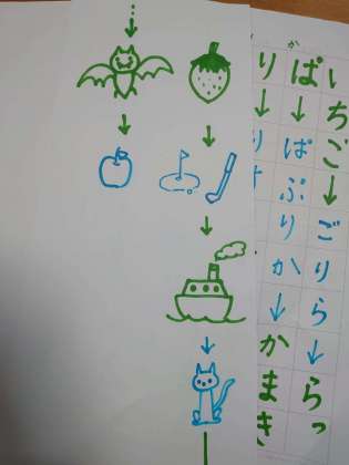 ノートと鉛筆を用意して、おうちの人としりとりをしてみましょう。