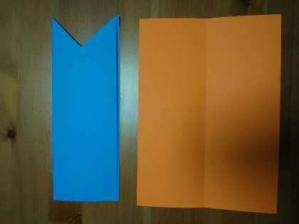 まず、画用紙を半分に折ってから、ハサミでしっぽの形を切りましょう。
