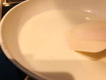 1・牛乳200mlをフライパンに注ぎ、中火で煮詰める。