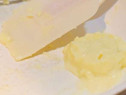 2・焦げないように火の強さを加減しながら混ぜ、固まってきたら弱火にする。