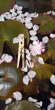 学校には池があって、おたまじゃくしや金魚がいるよ。花いかだがきれいだなー。
