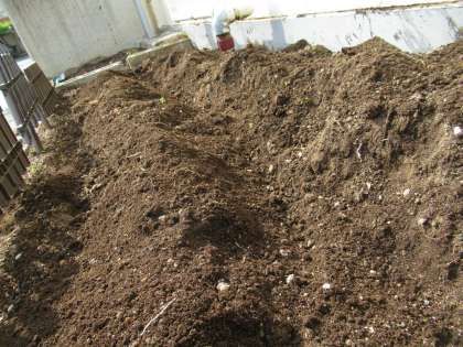 1枚目の写真は、さつまいもの苗です。2枚目の写真は、畑にうねを作りました。