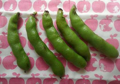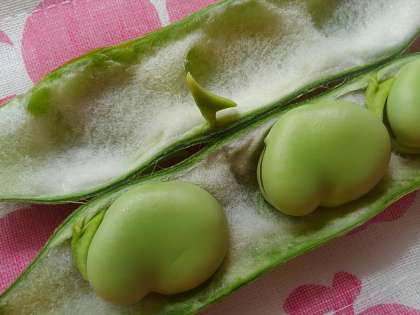 そらまめは漢字で「空豆」と書きます。さやが空に向かって伸びることから、その名がついたそうです。また、さやの形が蚕に似ていることから「蚕豆」とも書きます。