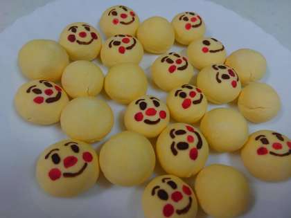 ※ココアと食紅をそれぞれ水で溶いて、つまようじを使って顔を描いてみました(絵心がないので温かい目で見てください)。お菓子作り用のカラフルなチョコペンなどで描いてもよさそうですね。