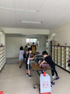 昇降口で迎えた新5年生。久しぶりに会ったみんなは、ちょっと大きくなっていました。