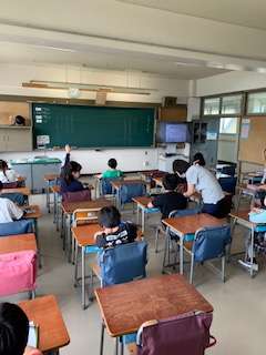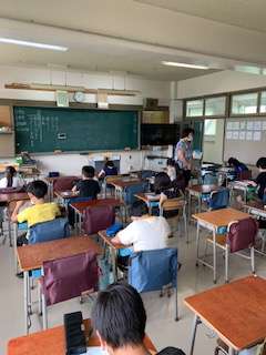 3年生Bの授業の様子です。3年生はクラス替えがあったから新しいクラスで自己紹介をする準備をしています。