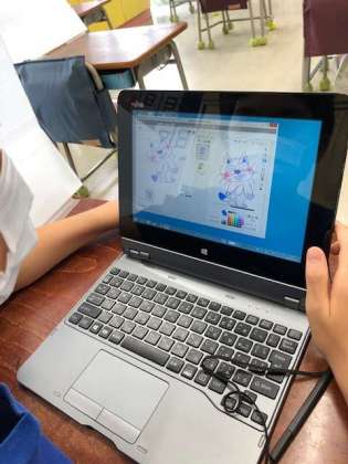 仲よし学級の4年生と6年生とで、タブレットPCを使ったプログラミング学習に挑戦しました。