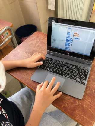 Scratchというソフトを使って、キャラクターの動かし方を考え、操作します。