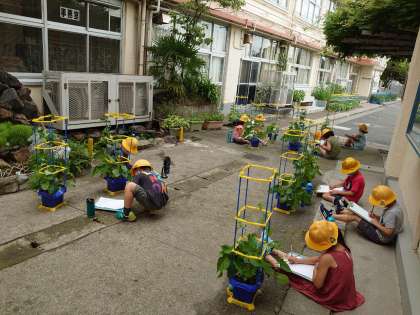 よく見て、たくさん触ってじっくり観察している1年生。