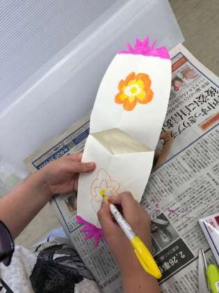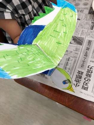 今日の図工は、牛乳パックがパタパタ鳥に変身です!