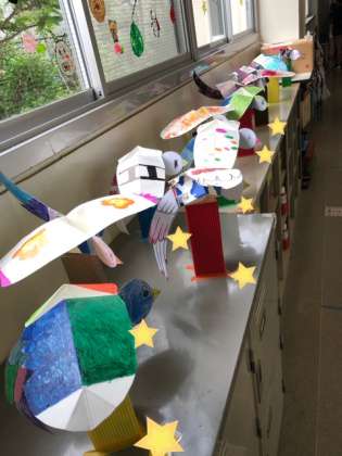 今、仲よし学級の教室前には、パタパタ鳥の群れがみんなをお迎えしています!