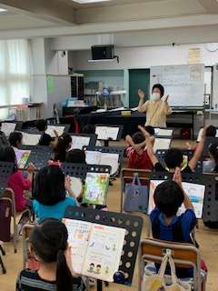 2ー2の音楽の授業におじゃましました。二拍子、三拍子のリズム打ちを楽しんでいます。手拍子のあとは、タンバリンとカスタネットを使ってリズム打ちをしました。みんな音楽を楽しんでいるのが伝わってきて見ている私まで楽しくなってきました。