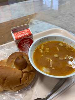 1年生の給食は、子どもたちは手を洗って、みんな静かに席で待っています。