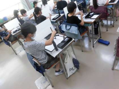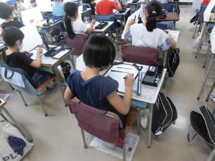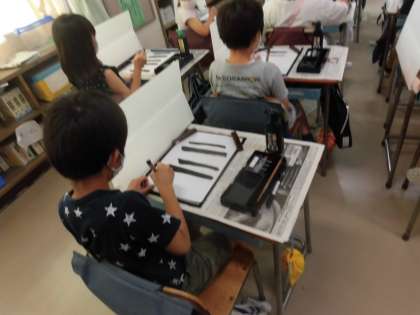 今日は初めてなので、線や丸をかいていました。今度は、文字を書いている様子を見に行きたいと思います。