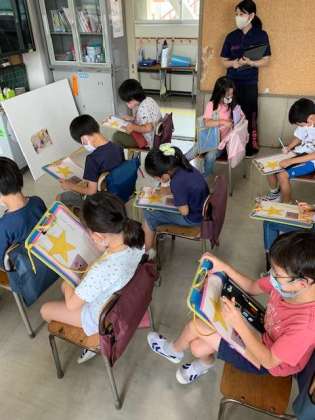授業のおわりには、一人一人に先生が見つけたみんなの良いところを書いたカードをプレゼントされて子どもたちは大喜び。