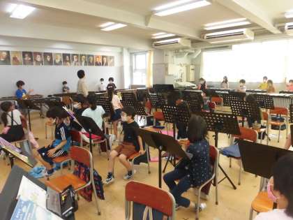 音楽の学習で「ぷっくりくじら」の曲を、木琴や鉄琴を使って楽しく演奏をしました。音楽室には、子どもたちの手拍子と、弾むような音が響き渡り、素敵な音のハーモニーを楽しんでいました。