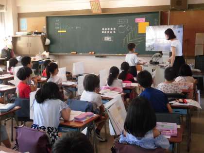 だんだんと学習する数が大きくなってきた2年生。今日は、「1000(千)」の数の学習を行いました。黒板にお金の100円の絵を10枚提示し、10枚集まると1000円になるという数のイメージ作りを導入で行いました。そして、たくさんいるひよこの数を、自分で工夫しながら数えていました。「数のまとまりに着目する」ことは、今後の学習においても、大切になってきます。