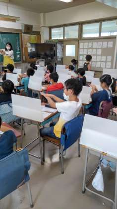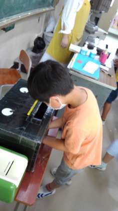 3年2組で、普段の手洗いで、どのくらい汚れがとれているか、ブラックライトを使って、確かめてみました。