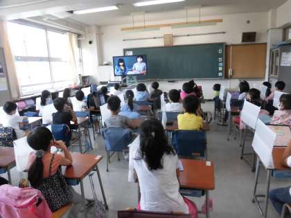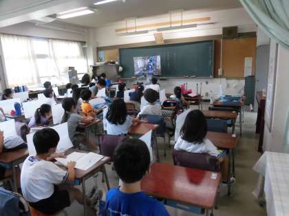 今朝はテレビ放送で、委員会紹介がありました。上級生が各委員会の様子を、楽しく、分かりやすく知らせてくれました。今は、学級の仕事を頑張っている2年生。学校の仕事を行ってくれている上級生の姿を、しっかりと見ていましたよ。