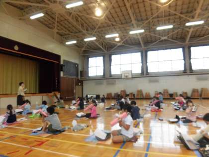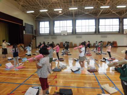 体育館からすてきな音色が聞こえてきました。今日は鍵盤ハーモニカの学習を体育館で行いました。「♪ソソミー ララソー」とても軽快な曲です。思わず、口ずさんでしまいました。