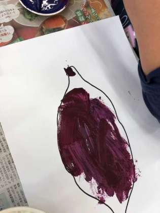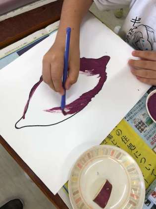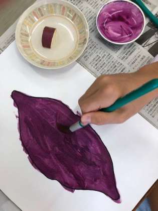 さつまいもの皮の色は、赤や青などの絵の具を混ぜて作っています。