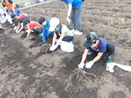 掘っても、掘っても、まだサツマイモが土に埋まったままです。