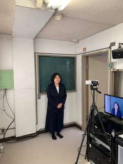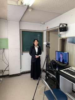 今日は、この春、山崎小学校から転任された3人の先生をお招きして離任式をしました。テレビ放送で2年生以上の子どもたちにお話していただきました。