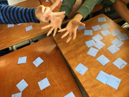英語は、観たいスポーツを尋ね合う学習として、神経衰弱をしながら英語で質問し合いました。