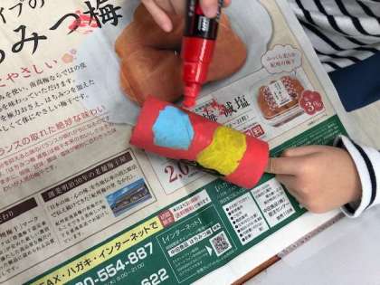 トイレットペーパーの芯も、こうやってリサイクルすると、素敵な飾りに変身するんですね〜!