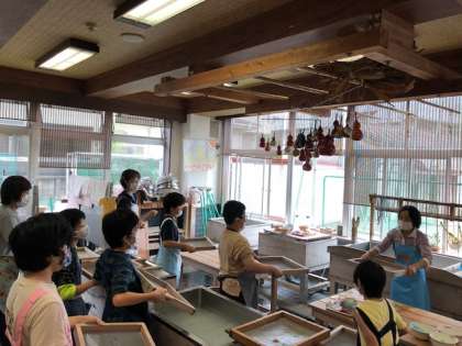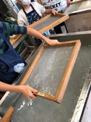 今日は伝統工芸室で紙すきをしました。
