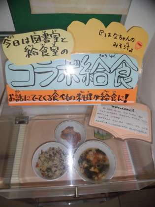 今日は「図書旬間 第6弾」です。「はなちゃんのみそ汁」という本から、みんなでおみそ汁を食べます。はなちゃんは、ものすごく早起きな小学生。出汁からとるおみそ汁つくりを任されています。給食室でもかつお節から出汁をとっておみそ汁を作っています。