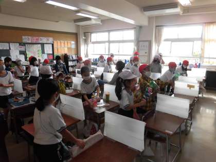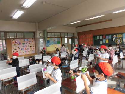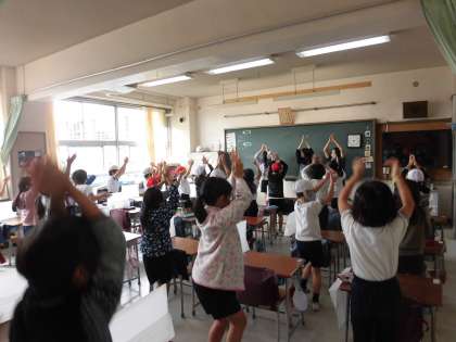 今日は休み時間に、6年生の応援団が教室に来てくれ、応援のダンスや、応援の仕方を教えてくれました。スポーツ祭り当日に向け、応援でも盛り上がっていきます。