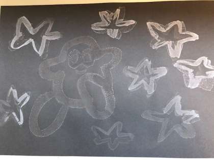 以前、食塩水を使って描きましたが、それが乾くと不思議な絵の出来上がり!
