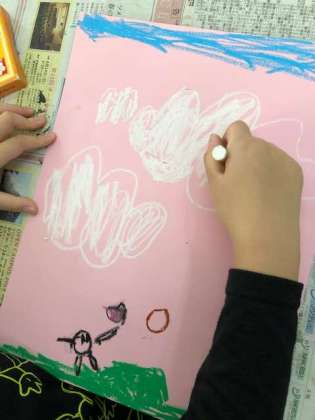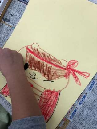 山崎スポーツ祭り「秋」に向けて、今日の図工では、仲よし学級の窓に飾る旗を作りました。