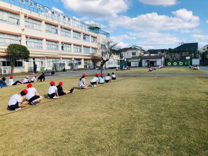6年生の競技「The秋もヒッパレー」は、綱引きです。赤白分かれて10〜12名ずつで戦います。今日は動きや場所の確認をしました。