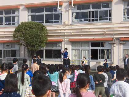 今朝の全校朝会、まずは、校長先生から先週の「スポーツ祭り 秋」のお話でした。