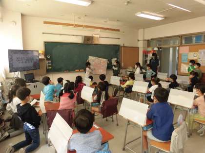 2年生は、昨年度経験した「紙すきを1年生に教えよう。」というめあてを考えました。
