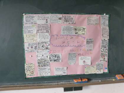昨日は、1組が、作った葉書にメッセージを描いて、1年1組に届けました。