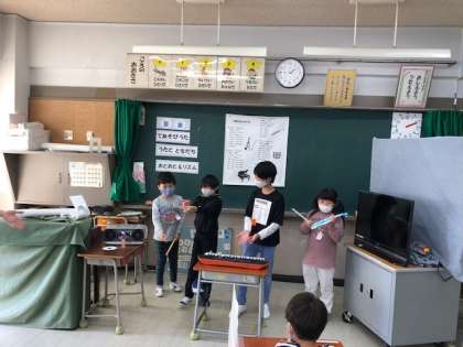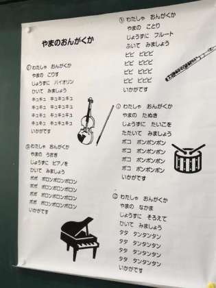 音楽の時間では、「山の音楽家」を振りを付けて楽しんでいます。