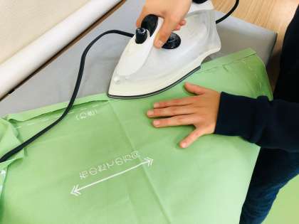 アイロンとミシンを駆使して、子どもたち頑張っています!