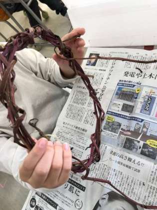 今日はリースの作り方を学んだ後、実際にツルをクネクネ巻きながらリースの原型を作りましたよ!