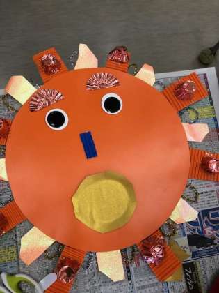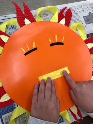 好きなように太陽の顔のデザインを考え、取り付けていきます。