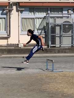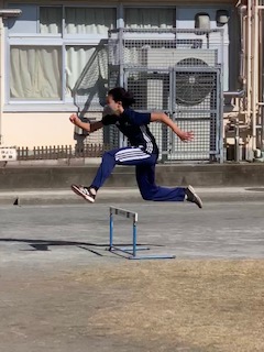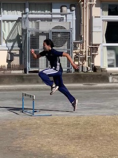大学で七種競技を専門にしている選手のハードルのデモンストレーションです。