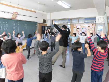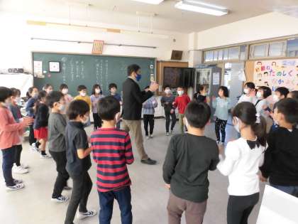 学級のみんなで「クワガタ音頭」をし、楽しみました。