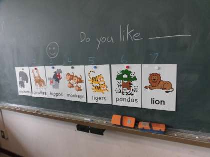 画面に提示された動物を、順番に英語で言いました。